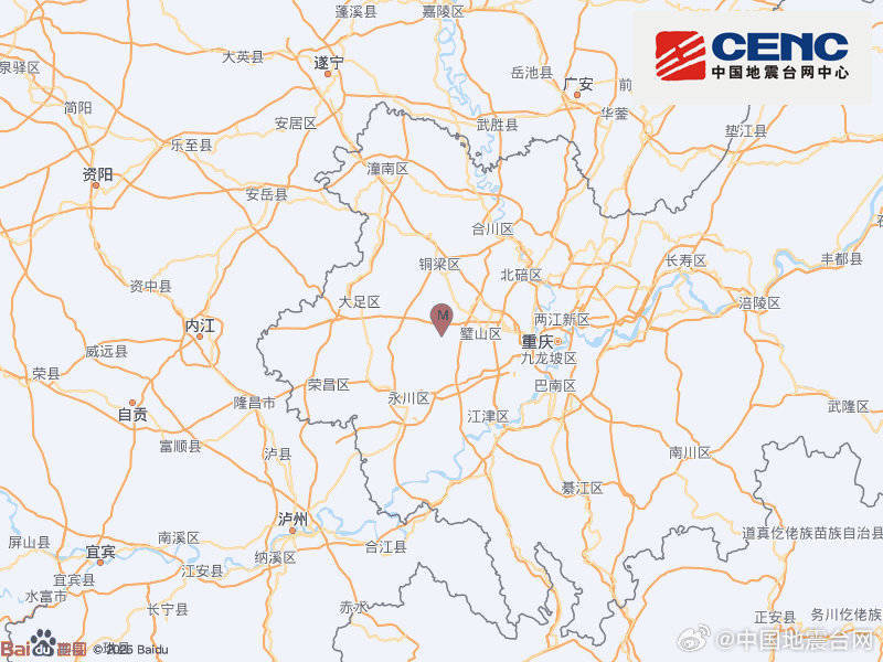 央视网消息:中国地震台网正式测定,4月14日11时53分在重庆铜梁区(北纬29.61度,东经106.07度)发生3.1级地震,震源深度8千米。
